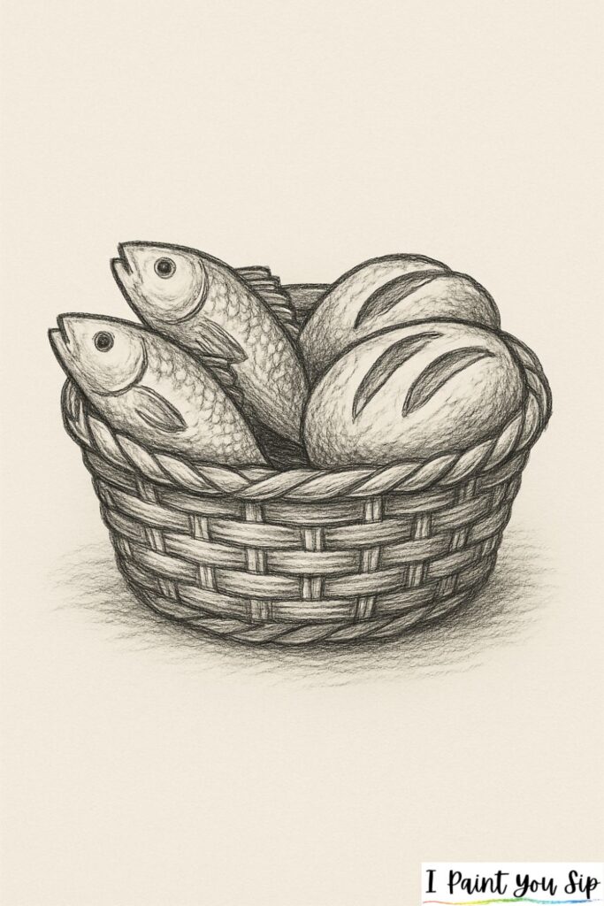 Draw a small basket filled with a few fish and loaves of bread. Keep it simple, this miracle-inspired image reminds us of gratitude and abundance.