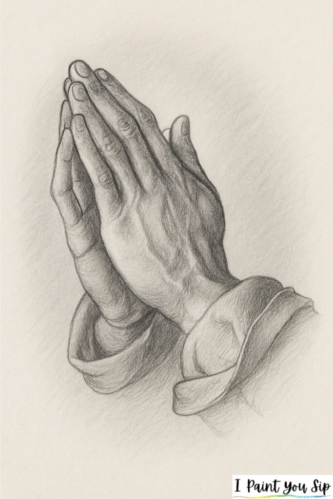 Trace your own hands in a praying position, then shade gently for depth. It’s a lovely way to personalize your art and connect prayer with creativity.