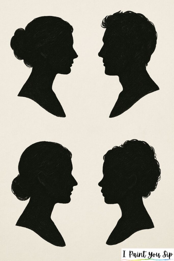 Trace the outline of a face or figure and fill it in completely with black. You can keep it simple or add texture with crosshatching. Try side profiles for an elegant look, they’re surprisingly easy!