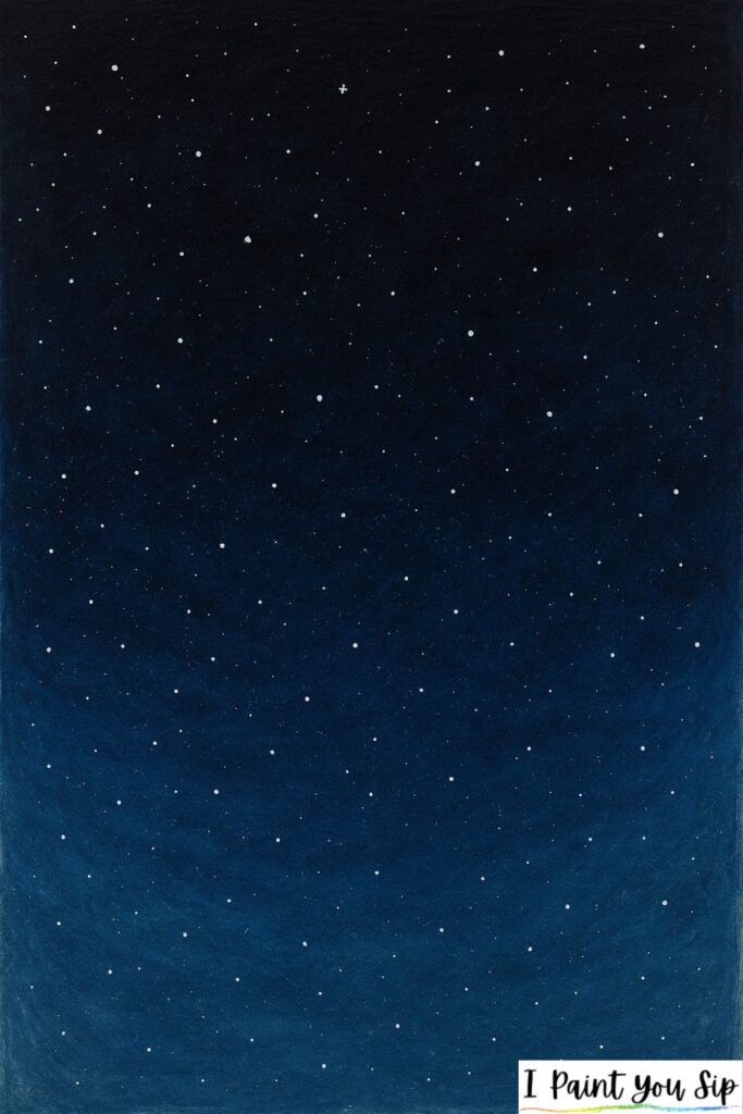 Blend dark blue and black together, then dot tiny stars with a small brush or even a toothbrush flick. It’s simple but breathtaking.