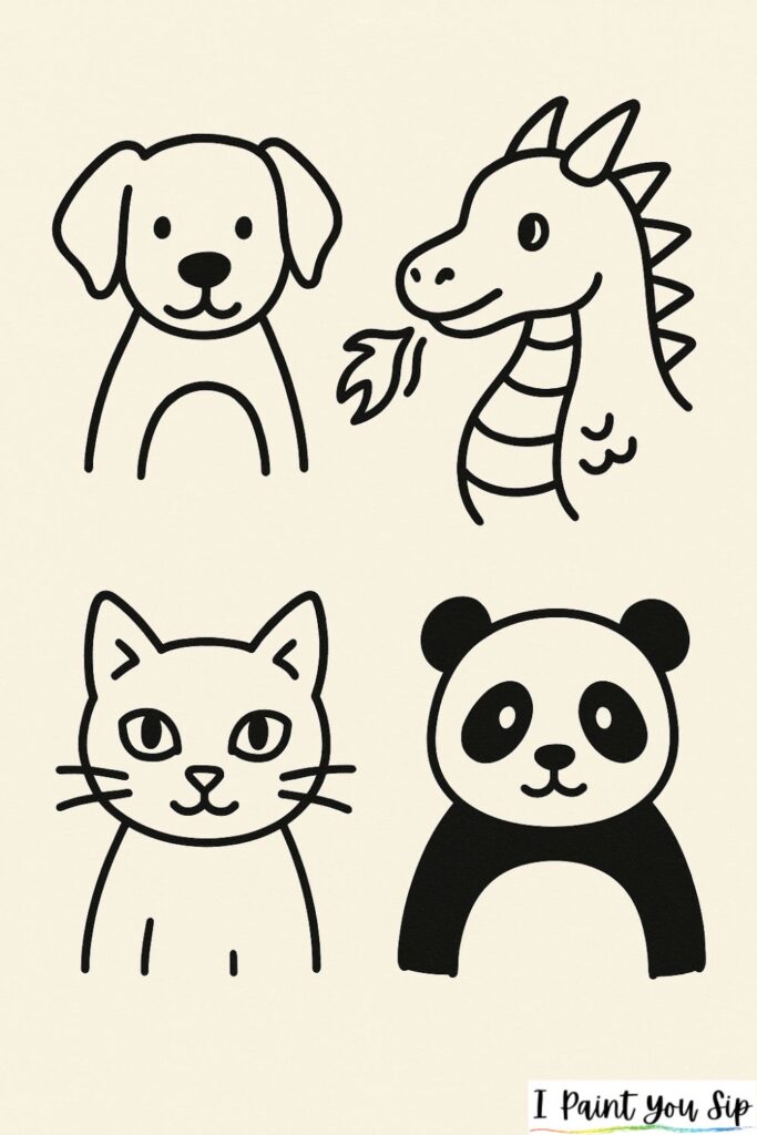 Start with your child’s favorite animal, dog, cat, panda, or even a dragon! Begin by drawing simple shapes to outline the head and body, then add the details like eyes, whiskers, or scales. Encourage them to use fun colors, even if the animal doesn’t look “real.”