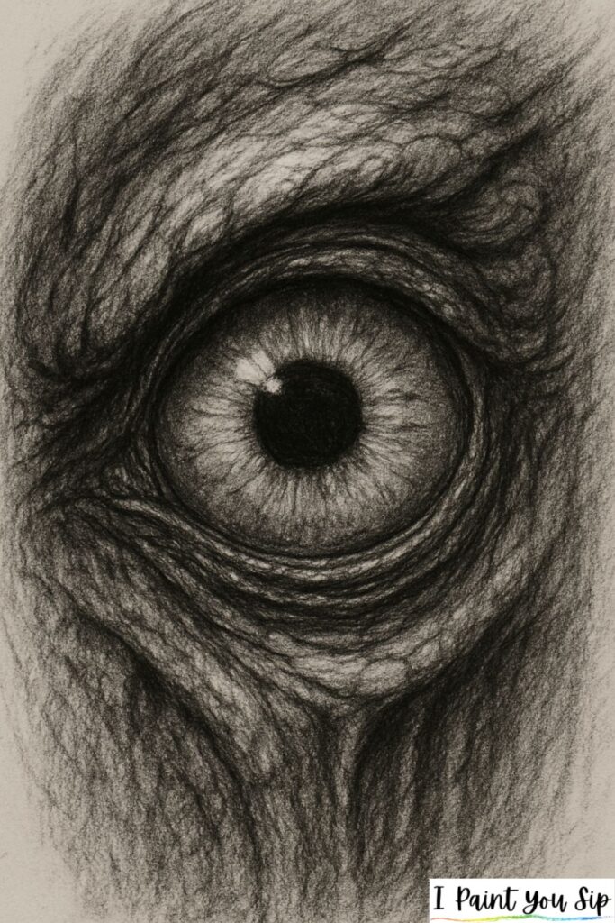 Zoom in on one huge eye surrounded by textured skin or scales. Add reflections and shadows to make it realistic or cartoonish and slimy if you prefer. It’s creepy but super fun to draw.